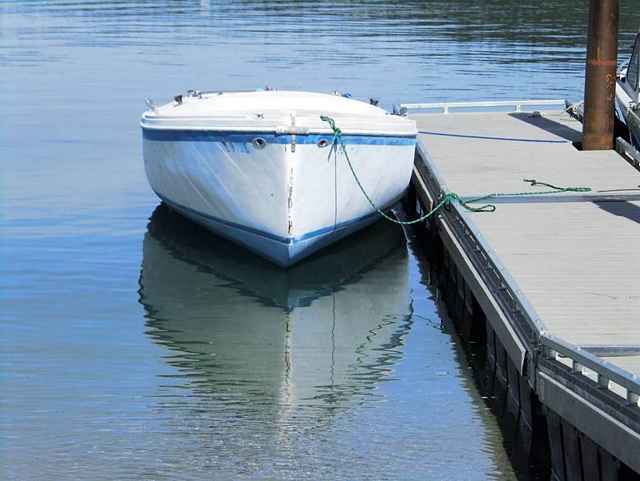 This is that same view, from about as close as this kid can wriggle - with the boat in the way. Sometimes, being ahead of the pack just doesn’t prove so much. Anyhow, this whole marathon with the trailer was simply to allow for quick in-the-water tests of the hull. First I need to look for leaks in my rather large patch job done to the bottom of the now truncated keel. Then, I’d like to do a short “sea trial” with motor in place to see if the rudder is going to be adequate, how high she sits with and without ballast, and stuff like that.