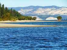 Phil and I were talking about just that while having dinner at Hunters’ one and only evening-eatery. The Hunters Inn is the local dive. But, they sell beer and food. And, we were both tired of what comes out of a can. So, up the hill and across the mesa from our quite-deserted campground. We had already been out on the lake scouting anchorages and beach camping spots much of the afternoon. And, there’s a half-bazillion of ‘em out there. Some of them look like this.