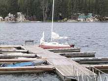 Lady Bug is just about the only girl at the dance. Moored in one of the dock units we push to the other end of the lake with a tin skiff.