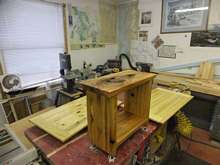 The last of the honedo's are honedid. One little bench and a couple lids still hada' be re-varnished. Now, the boat building season can begin.