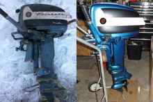 I knew I wanted to build my next boat so I didn't waste time searching Craigslist for the perfect used boat. A used MOTOR is another story. One that consumed nearly another year of time. Having narrowed my list of potential designs to under 18 foot powerboats that I was capable of building, I found I would need a motor in the 18-25hp range and if comfort was my first priority in the decision making process, cost was a close second. I read every Max Wawrzyniak article I could find on Duckworks and bought his book, Cheap Outboards. Then, when I found a Craigslist listing for a sad looking, long neglected 18hp 1957 Evinrude Fastwin, I made an offer to trade an old snowblower for it. I was surprised when the guy accepted. After I got it home I found sand in the lower unit where there should have been oil, and zero compression in the top cylinder. It took a while, but with a new head gasket and the knowledge I had from Max's book, I coaxed it back to life. While resolving the power half of the powerboat equation, I spent my free time searching just the right design for that nifty 55 year old motor.