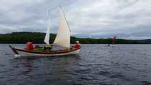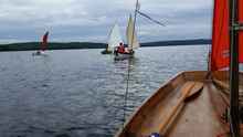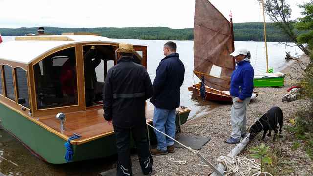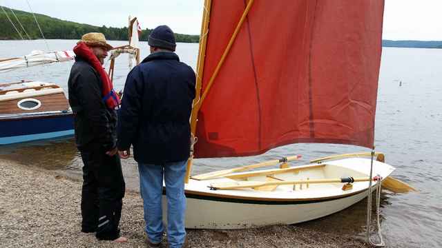 Clare and Brian brought one of their Swampscott Dories. Clare and Brian’s boats are beautiful – they have more boats than the Canadian Navy (I think that’s about twelve…) and they are all finished to such a high standard. This particular one is a sailing dory complete with an outboard well and two rowing stations. Melody, their dog, was always right there in the middle of the action keeping an eye on things.