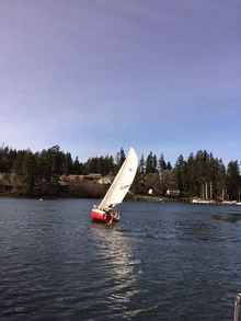 The only boat to brave the breezy conditions in Jarrell Cove during a break in the clouds. "Lady Bug" still knows her stuff, but the skipper was a bit stiffer, and less agile than in years gone by.