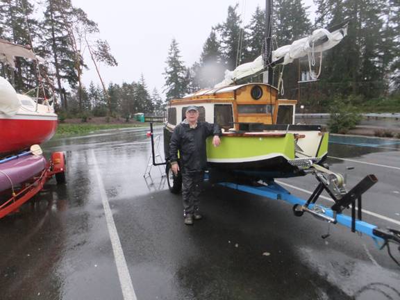 Along comes a gent with an unfinished nine-foot Minto in tow. My own "Limerick" is a 1976 version of this iconic faux clinker dinghy cum pocket Whitehall. There we were standing in the rain (a' la', "Only mad dogs and Englishmen stand in the mid-day sun.") talking about boats and getting wetter by the rain drop. Kurt the Minto Man pointed out that he had been looking for us. He had seen the Scram Pram pass on the highway the previous Friday when we came up from Olympia. He found us, by way of this or that forum or website and then made a point of laying a converging course. Wow, huh?
