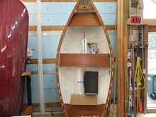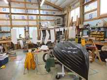 In more or less continuous production since 1965, the little Minto dinghy is now in the capable hands of her fifth artisan. Kurt also repairs big boats and builds the more eclectic craft in this sawdust palace. What a grand place to turn trees and polyester into works of art, huh?