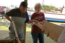 Against this background, and at nearly any time during the festival, were talks being offered by designers such as John Welsford, Mik Storer, Jacques Mertens and Richard Woods, builders such as Marty Worline, and authors such as Tom Pamperin. One could row around the harbor in a couple of boats available for that purpose. One could catch tours of Farley Boat Works and the Port Aransas Museum. One could take the little ones by the Children's Activity Pavilion where young people could build a shrimp boat, an oyster boat, have their face painted (by Terri, ridiculously