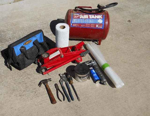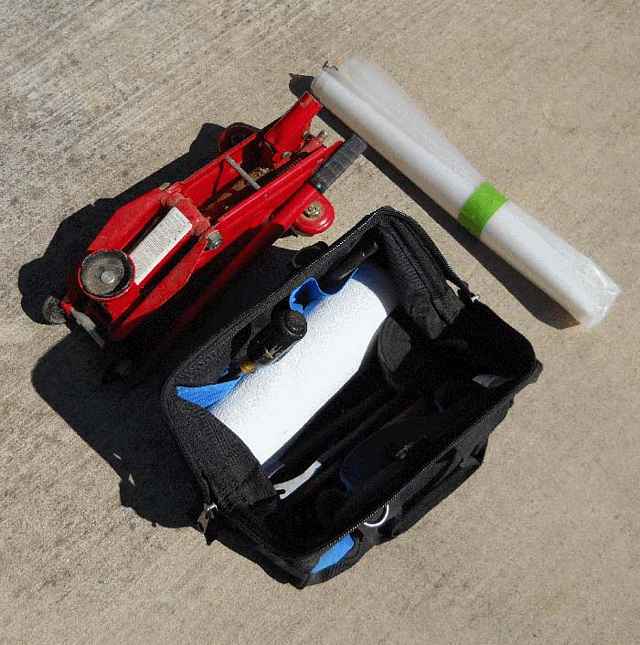 - I carry a small light weigh floor jack ($29.00 on sale), and;