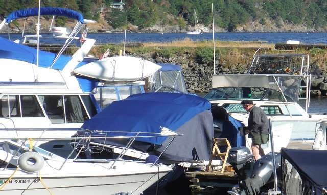 Camping on a small (26 ft) dory however does create some problems when the cabin can only hold two. Mom and Dad have to sleep in the cockpit, and given that we live in the Pacific Northwest, it is not often wise to sleep under the stars. In the first ten years of our cruising I tried a variety of tarps and tents over the cockpit to provide protection as well as privacy. Nothing seemed to work well. Either they leaked or they took forever to put up and take down, and we could not stand up in the cockpit. The first picture (Fig. 1) shows the best design I could build. It worked somewhat but was not optimal. It kept the rain out but didn't let us stand up.