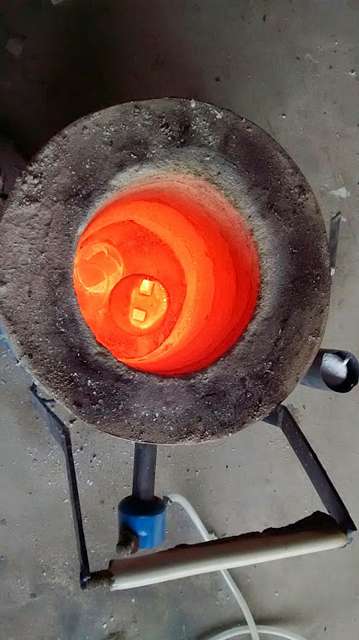 Now, you have to burn out the mold. You need to heat it up until its red hot, and all the plastic will burn away leaving an empty cavity in the exact shape of your original part: