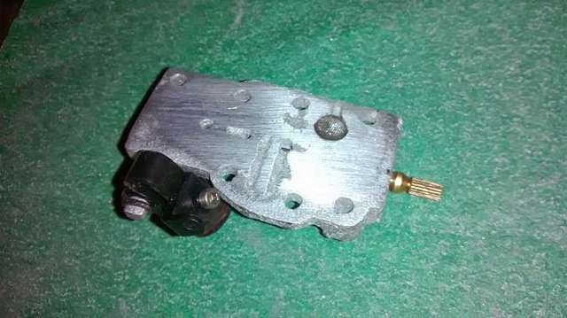 This casting is actually a little rough, the way it cooled caused some serious shrinkage so the surface finish is lousy, but all the important features are there in the part, and after a little cleanup with some sandpaper it doesn't look too bad. The only other work it needed was to tap 1/4-28 threads in the front of it for the idle screw, drill out the tiny idle port at the end of that tunnel, and bolt it up!