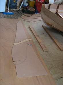 Note that where there is a break in the curve, such as would be where the line of the seat top crosses a chine or plank lap join, run your batten from that angle to the next, you cant put a batten around that angle so do the curve on each side separately.