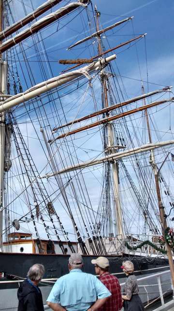 Long story short, he dropped by the workshop one day and got to talking with Carol, mentioned boats, she mentioned Duckworks, and we got an invitation for a personal tour of the Elissa. Chuck called Jamie soon after, and we had a date.
