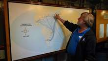 Below decks in what was the cargo hold, is an onboard museum which includes the map of all Elissa's voyages. |
