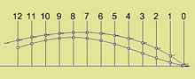 In our example, we decide that the origin from which we locate all points is at the intersection of station 0 and the baseline (BL). We are going to be consistent and measure all height (z) from the same origin. Let's draw the points at station 8. First, we must locate station 8 along the X axis. Atkins show all stations equally spaced by 22” except for the ones at the ends, transom and stem. Let's draw a line at each station to keep things clear. That puts station 8 at 8*22 = 176”. Our X coordinate for all points on station 8 will be 176. Let's mark a point on the sheer, at station 8: We need a height (Z) and a width (Y).