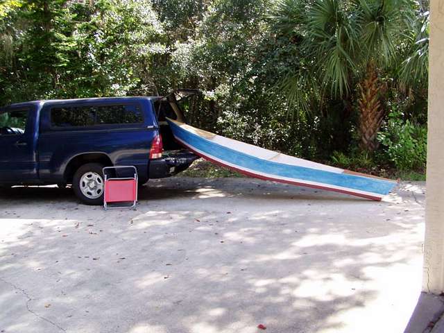 My son in North Carolina had his two-man kayak stolen. This created an opportunity for a boat building Granpa. I suggested to my grandson, Tyler that I could bring him one of my creations now in residence, all of which are about 250 pound capacity. Tyler informed me of his need for a two-man kayak with a capacity over 300 pounds. Tyler is 17 and heading toward the 200 pound mark. His dad is the same size which would mean TY is not looking for a two man craft so much as a coed craft. As an old Pepaw who has 6 grand daughters and only one favorite grandson, I have to guess most teenage gals come in at 125 or less. This means a boat that will handle around 325 ponds. This leads to a second problem, that of length and transportation. My vehicle is a small pickup. The grandchild has use of a Honda Accord and a Honda minivan.