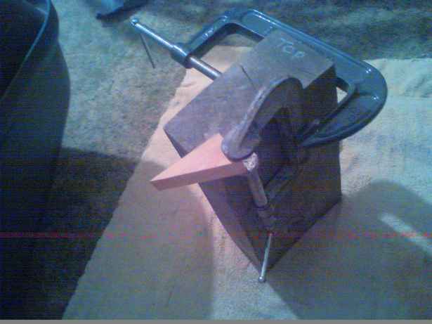 Rube Goldberg vice for mounting grommets high enough for cutting. Be sure to tell a loved one when you expect to begin using the vice, and when you expect to finish.