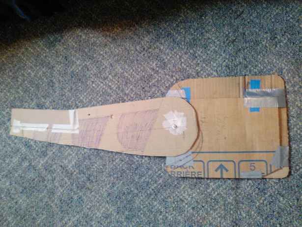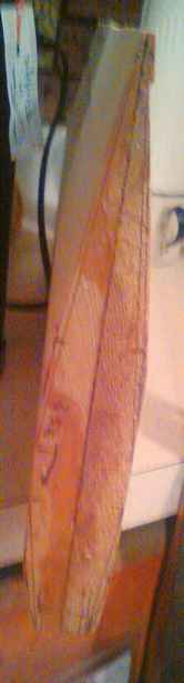 Pine rudder blade laid out using straight lines first, curved lines next. Almost missed when handheld power planing; to center of line!