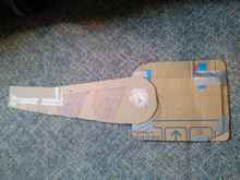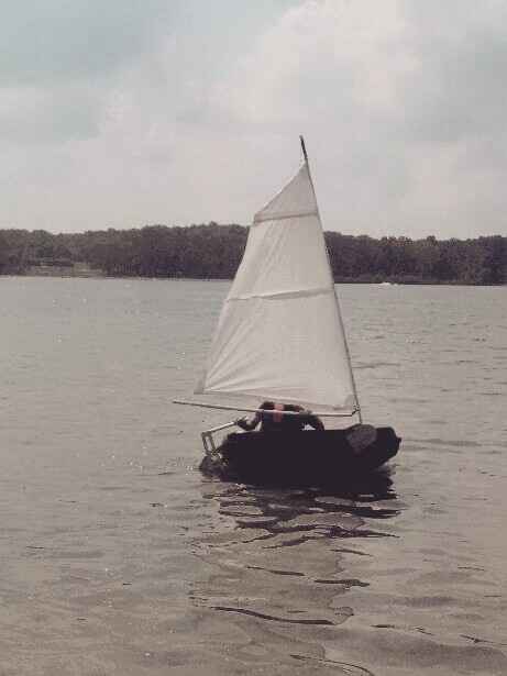 This is the Sears cartop carrier being transformed into a worthy sailboat. Seems Sears may label all their carriers "X-Cargo", but this may be their biggest: 66" LOA x 36" wide. The front will form a scow bow, and the carrier's height will make a lot of freeboard - about 16". The finished craft will be quickly convertible to a kayak, and is made of the same tough polyethylene. If we get these boats any shorter, somebody's going to have to start a stand-up class.