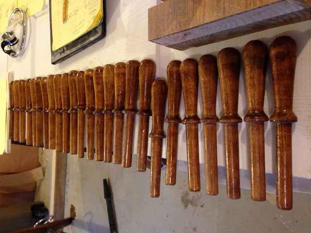 Grandpa Farrell made all of the belaying pins on his lathe. |