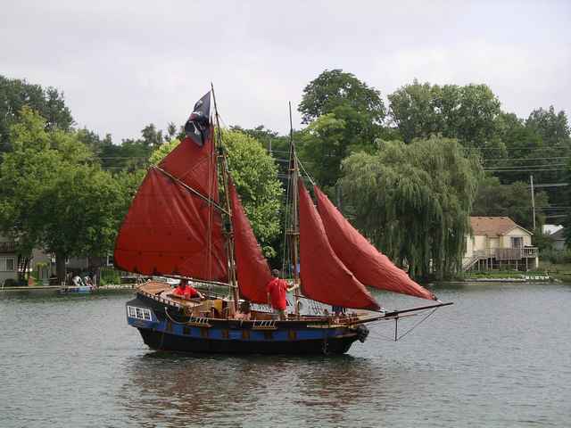 Stuart Reid designed a 23 foot Pirate ship for me about 3 years ago. She took me 2 1/2 years to build, which was a labor of pure love. He said that he consulted with you on the project and final design, and always had nothing but the highest compliments when talking about you. Here is a picture of her under sail last summer.