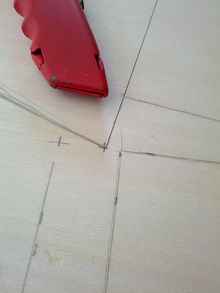 After 1hr: all straight lines pre-cut with stanley knife. |