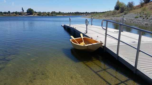 I thought long and hard about adding bulkheads and decks. Michalak’s hand-wavy “use foam blocks when sailing to avoid swamping” gave me some mild nightmares. I just didn’t want to add all that extra weight, and void the whole point of the boat. Instead, I made some cleats out of excess gunnel material. I bought two very nice 55L dry bags. I bulk out the dry-bags with balloons, fasten them tight, and lash them into the bow and stern. I tried it in my backyard pool, it works well.