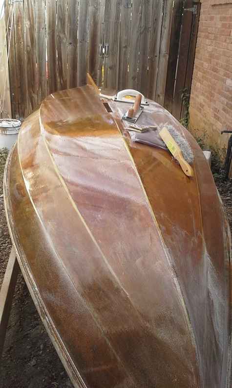 Progress on the 14' Row/Sail (I gotta come up with a name for this boat). I'm hoping this will be the last round of board-sanding to level the hull for primer and paint. After the initial 'glassing and minimal epoxy (a year ago) I've been using it in rough, unfinished form. It's well past time to get it looking good and finish it out. In the last week or so I sanded out the initial epoxy coat and after 3 coats/sand-level/fill/ 1 coat I might be able to final sand have a shot at getting a suitable surface for a primer coat.