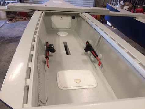 Today was the rollout of the shop for Sail52 of the Seaclipper 16. Built to plan with open cockpit design, daggerboard and swing wing amas. Will be rigged with a Hobie 14 rig (still to be purchased.)