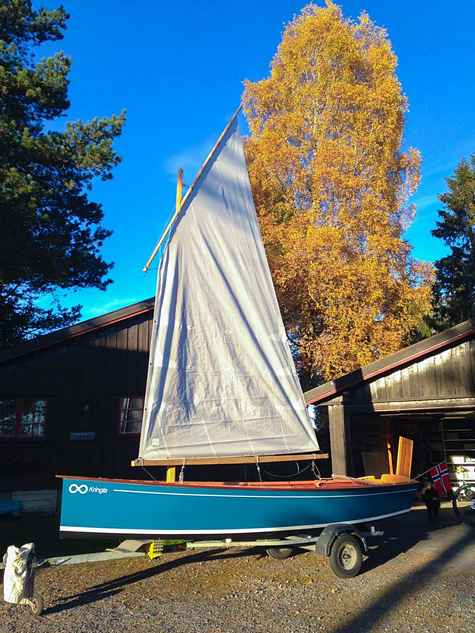 Ooze Goose completed smile emoticon I sail tomorrow flying a 76 foot lug borrowed from my Mayfly 14 (in picture behind boat). Hoping it works out!